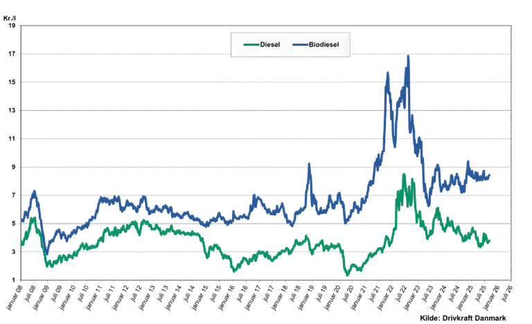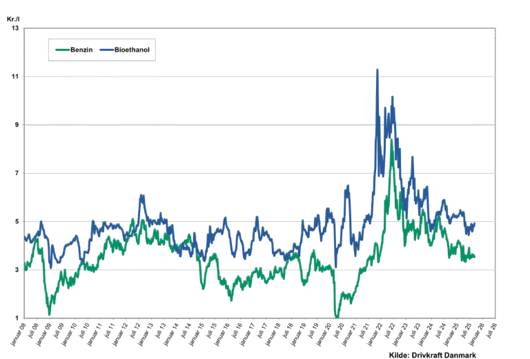 Her kan du se grafer for den internationale notering på biobrændstoffer. Den første graf viser den internationale notering på biodiesel (FAME) i sammenligning med prisen på almindelig diesel. Den anden graf viser den internationale notering på bioethanol i sammenligning med prisen på benzin. De viste priser er indikative.